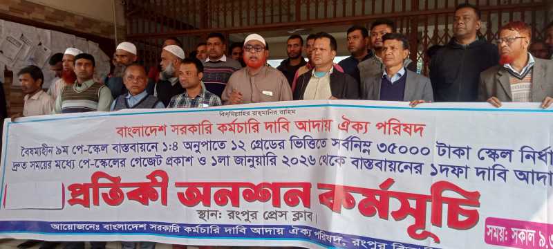 রংপুরে সরকারি কর্মচারীদের বেতন স্কেল বাস্তবায়নের দাবিতে প্রতীকী অনশন