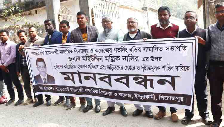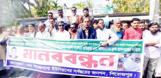 পিরোজপুরে বিএনপি নেতার ওপর হামলার প্রতিবাদে মানববন্ধন